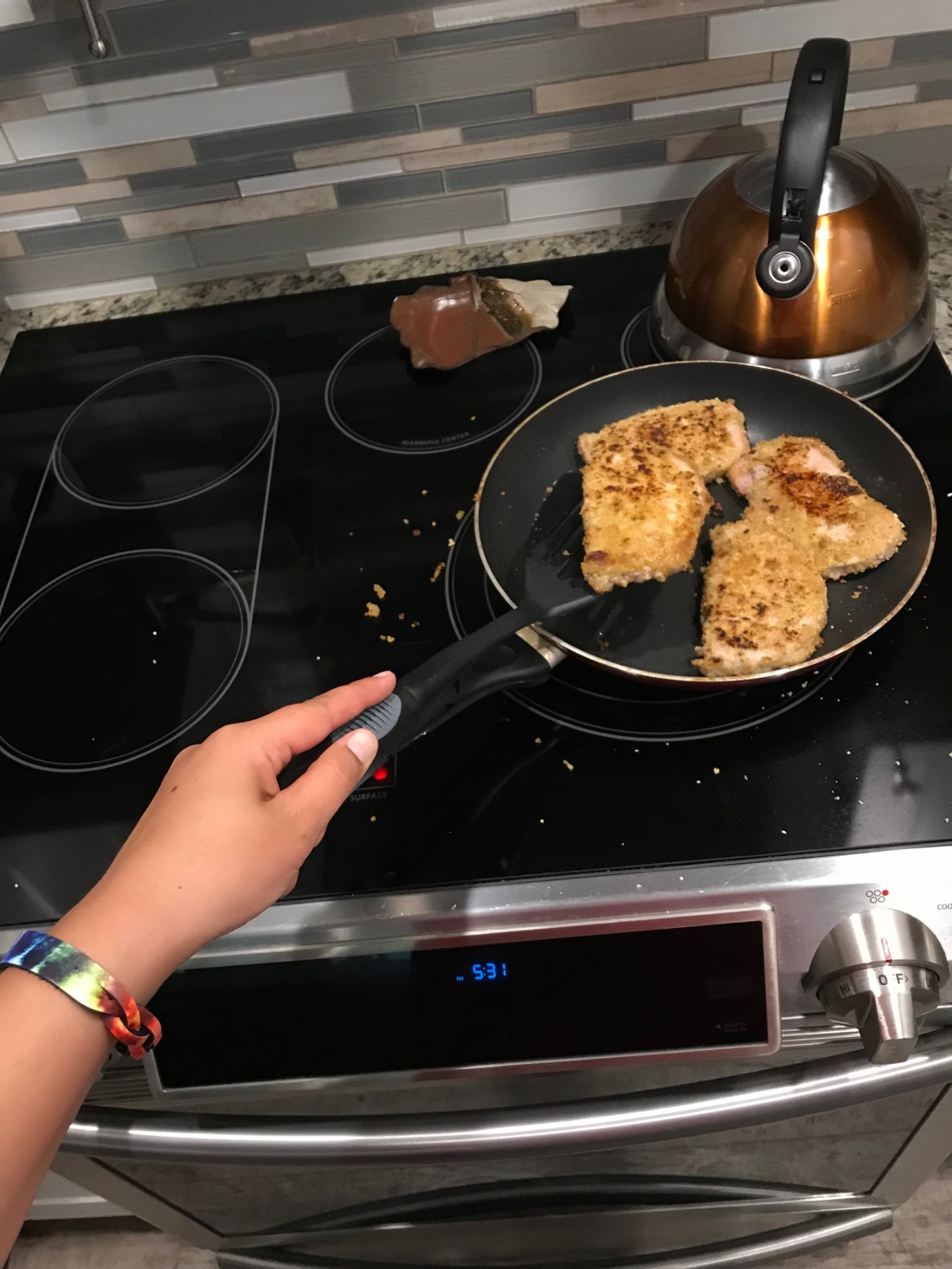On April 14th I decide to make dinner all on my own. I was home alone and dinner was all on me. Instead of making something in the microwave or putting a pizza in the oven. I decide it was time to make something good. I don’t want to just make things in the microwave all my life. I want to be able to make a nice dinner for myself when I live alone. On this night, I made pork chops. I had no idea how to cook pork chops. I first put ranch flavored seasoned flour on the pork chops. I put oil in the pan then laid 4 pork chops in the pan. I cook then until the were brown and also brown in the middle. I flipped them every time I thought it was needed. They pork chops ended up turning out very well and they actual tasted great! I also chopped us a salad and had some mash potato with this meal.